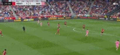 38岁的梅西,决骤30米单刀过门将得分!这是梅西本赛季好意思职联(18场)打进的第17球,还有7次助攻。布斯克茨的直塞,梅西的奔袭,齐绝顶精彩,统统打穿纽约红牛的防地。