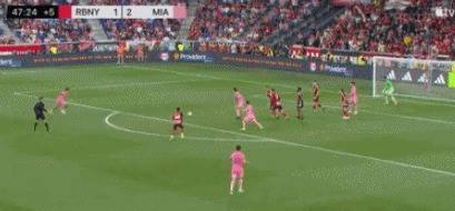 这是迈阿密外洋的反击,布斯克茨长距离直传,梅西带球高速杀入禁区,左脚趟球晃过门将,松驰将球送入佛门,迈阿密外洋4-1高出!